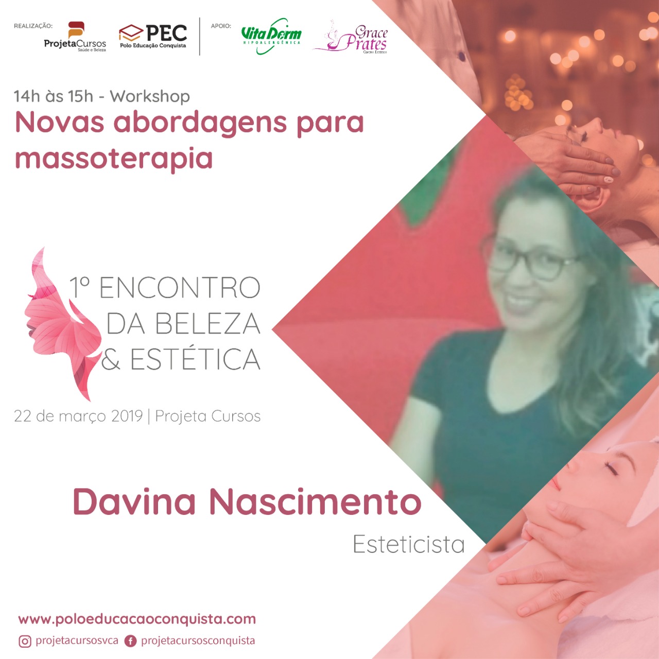Workshop – Novas abordagens para massoterapia – Davina Nascimento – 14h às 15h